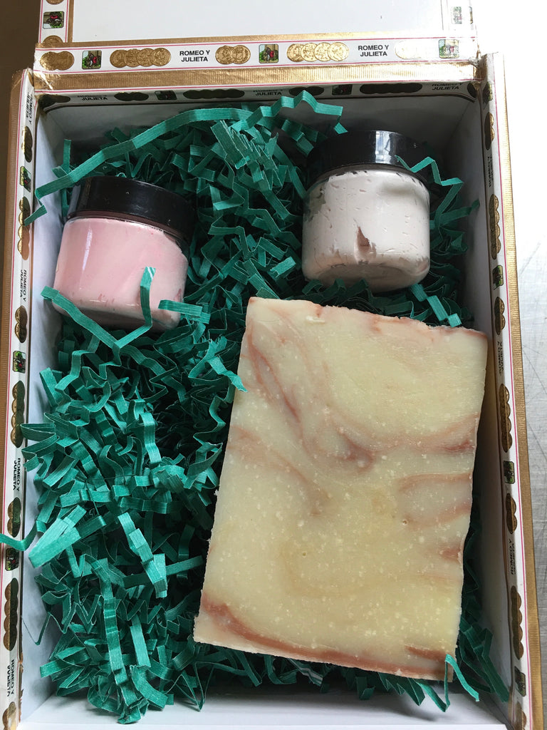 This a wooden gift box that is made a one-of-a kind by what you choose to put inside of it. This spacious box will hold a bar of soap and a soap dish.